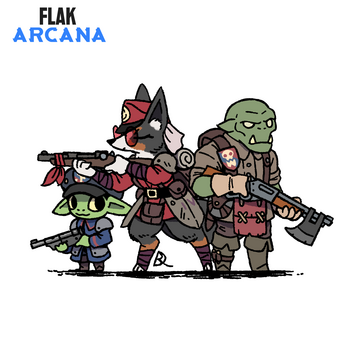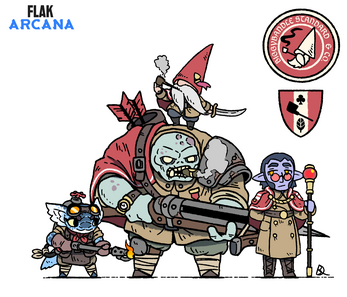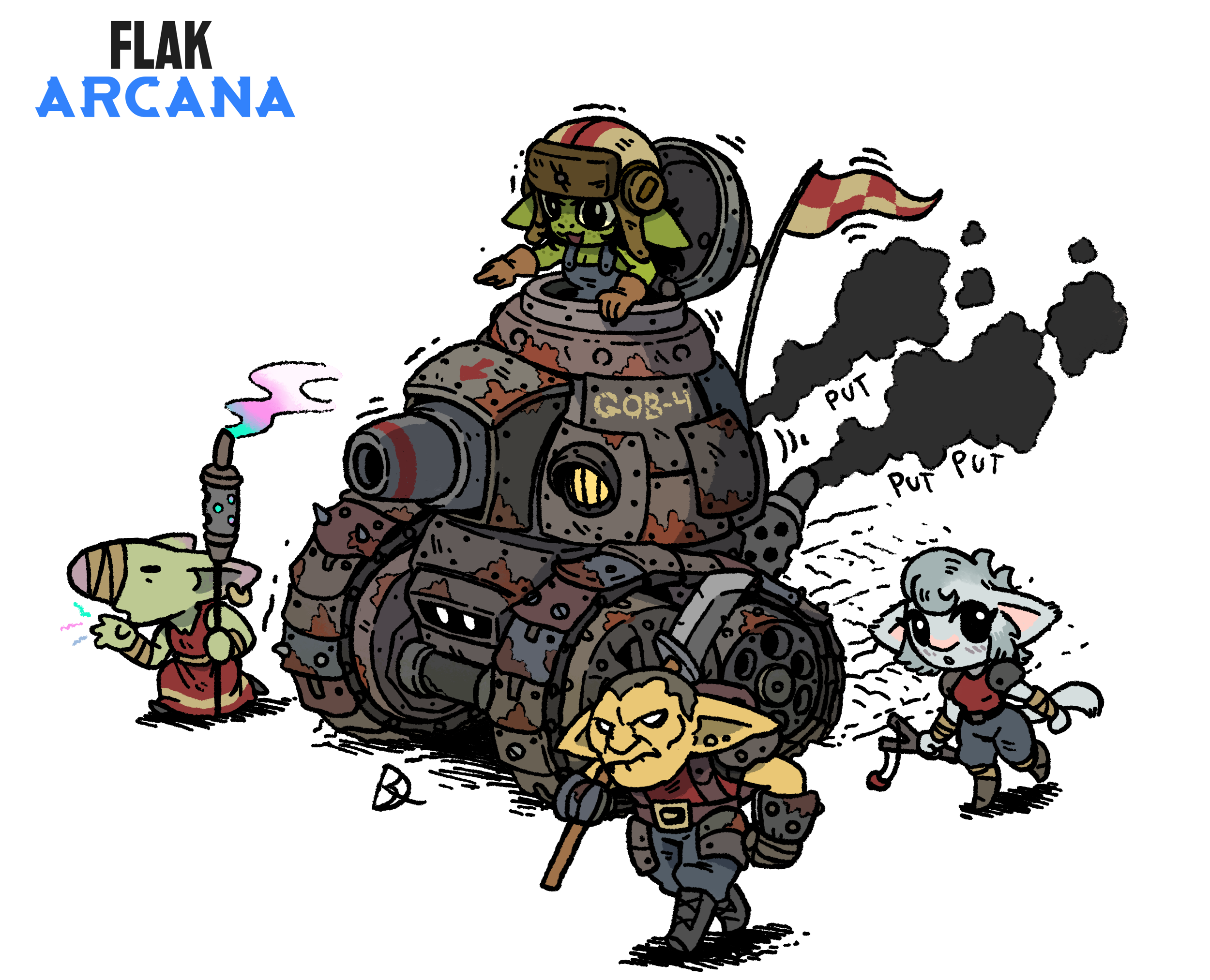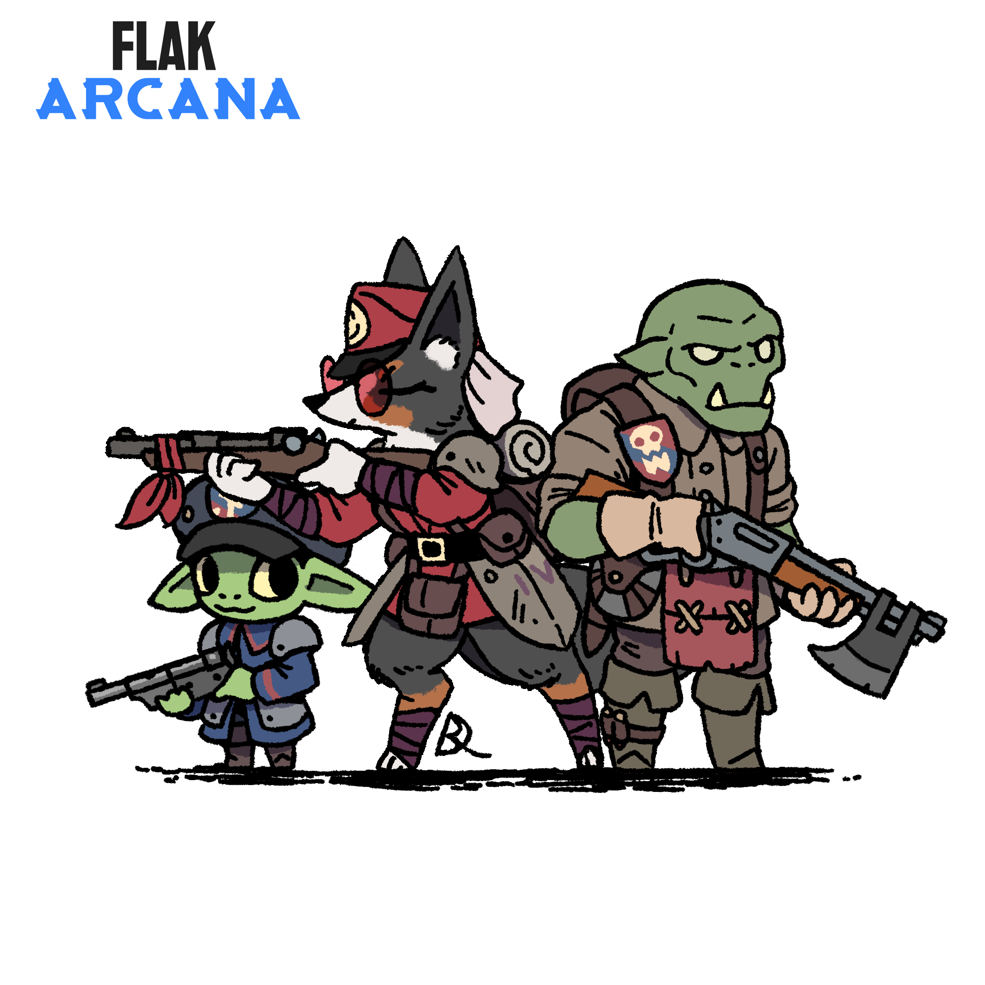 Flak Arcana is an ideal setting for players to create parties of whatever kind of characters they like, be it tank-piloting goblins, hex-flinging jesters or even orc rocketeers.